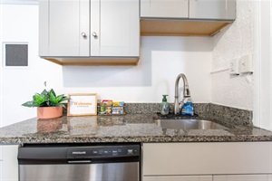 The open-plan kitchen and living room create a welcoming space to unwind or work remotely. Smart storage features like under-bed drawers, a luggage rack, and a closet keep things organized and clutter-free during your stay. The full bathroom, located off the bedroom, offers privacy and convenience for both short visits and longer stays.